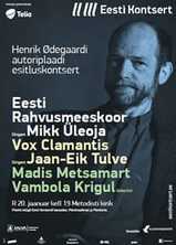 Min siste cd lanseres internasjonalt ved en konsert i Metodistkirken i Tallinn fredag 20. januar kl. 19:00. Hele cd-en blir framført, av Det statlige estiske mannskor RAM og Vox Clamantis. Konserten overføres direkte på estisk radio, og det lages et tv-program med intervjuer og opptak fra konserten. Se: Eesti Kontsert